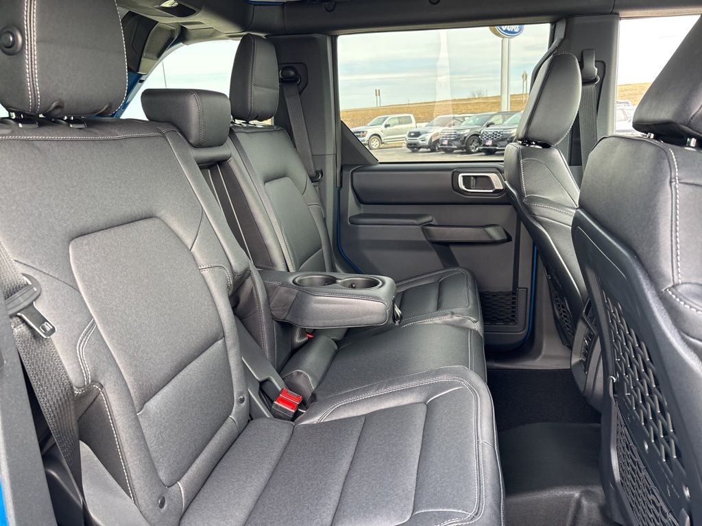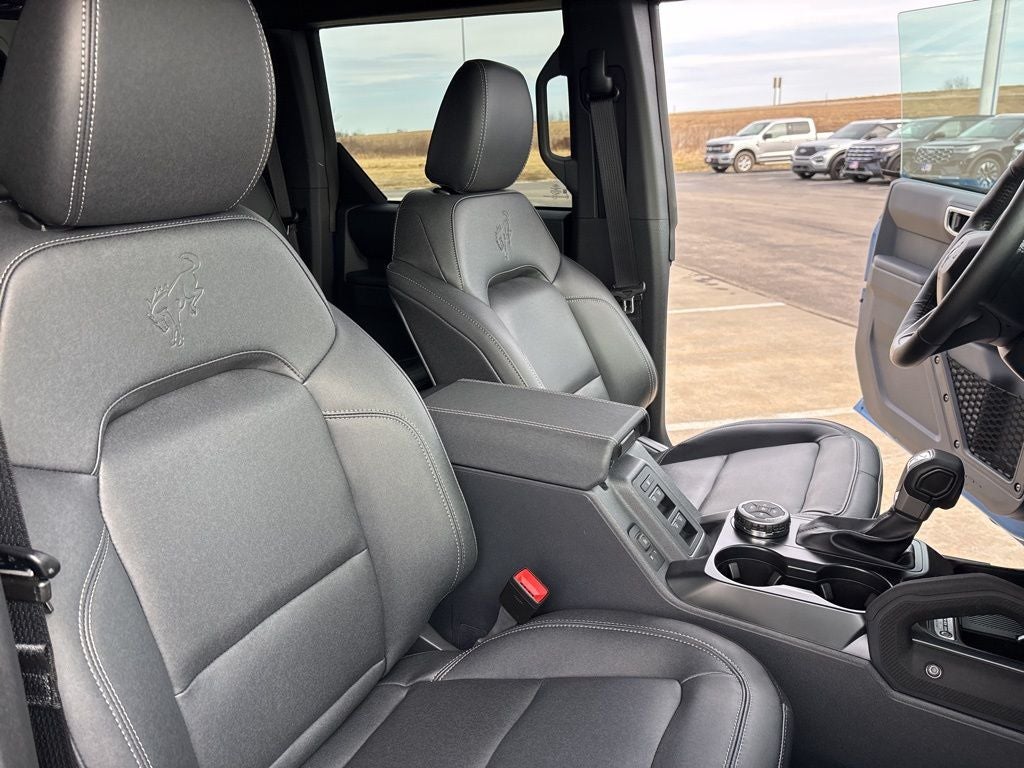 Designed to conquer the most challenging terrains, the Bronco Badlands boasts a rugged exterior with a body-color painted hard top, LED approach lamps, and a striking Velocity Blue Metallic finish. The interior is equally impressive, with heated front seats, a heated steering wheel, and an information-on-demand panel that keeps you connected and in control.