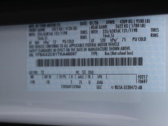 2026 Ford Transit-350 RWD 10-Speed Automatic with Overdrive 3.5L V6 Flex Fuel Oxford White