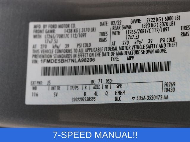 7-SPEED MANUAL!! Experience the ultimate in off-road capability and style with this 2022 Ford Bronco Black Diamond. Boasting a powerful 2.3L EcoBoost I-4 engine paired with a 7-speed manual transmission and 4-wheel drive, this Bronco is ready to take on any adventure you can imagine.