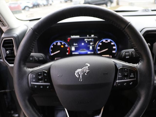 Slip into the luxurious leather-trimmed heated sport contour bucket seats and enjoy the convenience of features like the wireless charging pad, universal garage door opener, and voice-activated navigation system. The Bronco Sport Outer Banks is also equipped with advanced safety technologies, including Evasive Steering Assist and Intelligent Adaptive Cruise Control, to help keep you and your passengers secure on the road.