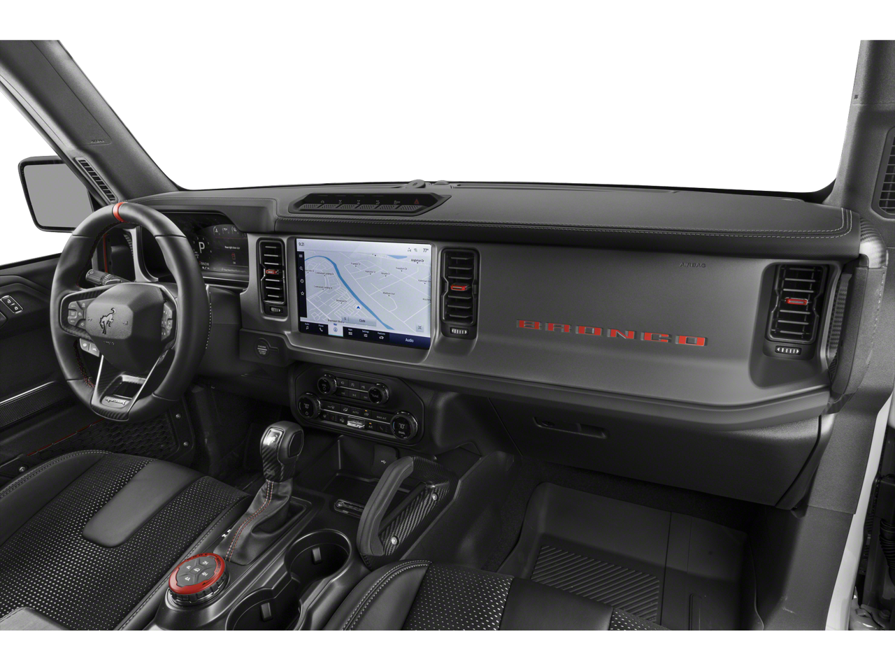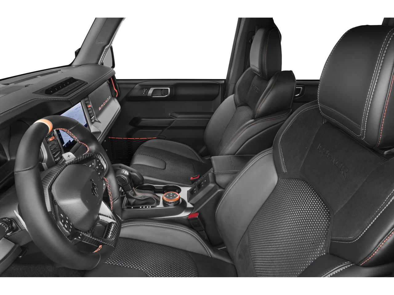 The Bronco Raptor's striking black exterior exudes a bold and aggressive presence, while the interior pampers you with premium features. Enjoy the convenience of a wireless charging pad, the clarity of the B&O sound system, and the seamless connectivity of the built-in navigation. Stay safe and aware with advanced driver-assistance technologies like Evasive Steering Assist and Adaptive Cruise Control.